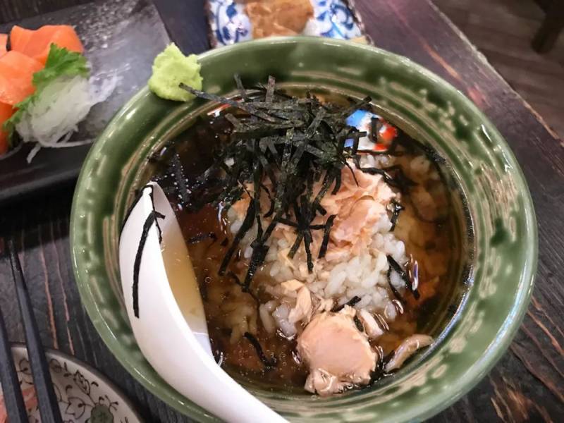 三文魚茶泡飯便宜又好吃,值得一試~反而蝦仁蛋包飯看似誘人,吃起來卻非常一般。