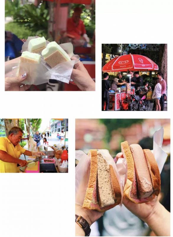 烏節路上老爺爺手推的冰淇淋車千萬不要錯過啦,有三種吃法,冰淇淋夾威化餅幹、彩虹面包和直接裝在杯子裏吃。