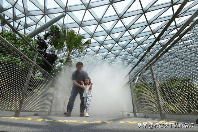 一段長度並不長的玻璃橋讓你體驗一把高空領略瀑布和整個屋頂花園。只是走這座橋需要門票$9.00新幣,筆者狠狠心購買了票上去體驗了一下。這座橋官方稱爲“天懸橋”,是觀賞雨漩渦的最佳位置。
