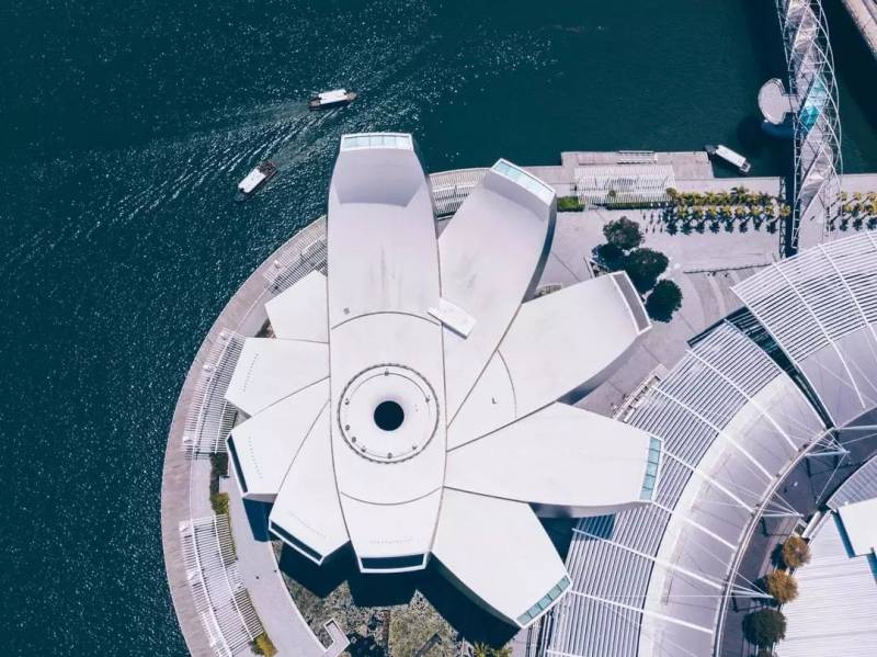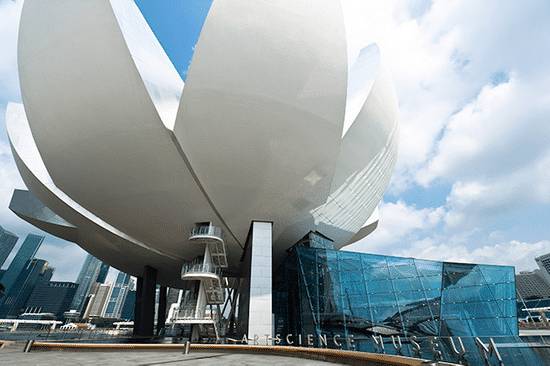 蓮花形建築由 Moshe Safdie 設計,內有 21 座畫廊,占地面積 5000 平方米。博物館的結構形似伸展的 10 根手指,象征著新加坡的好客之意。自然光透過每個“指尖”照進博物館,以最佳光線展示每件展品。呈現世界著名藝術大師達芬奇、薩爾瓦多·達利、安迪·沃霍爾、梵高和埃舍爾等人的作品。