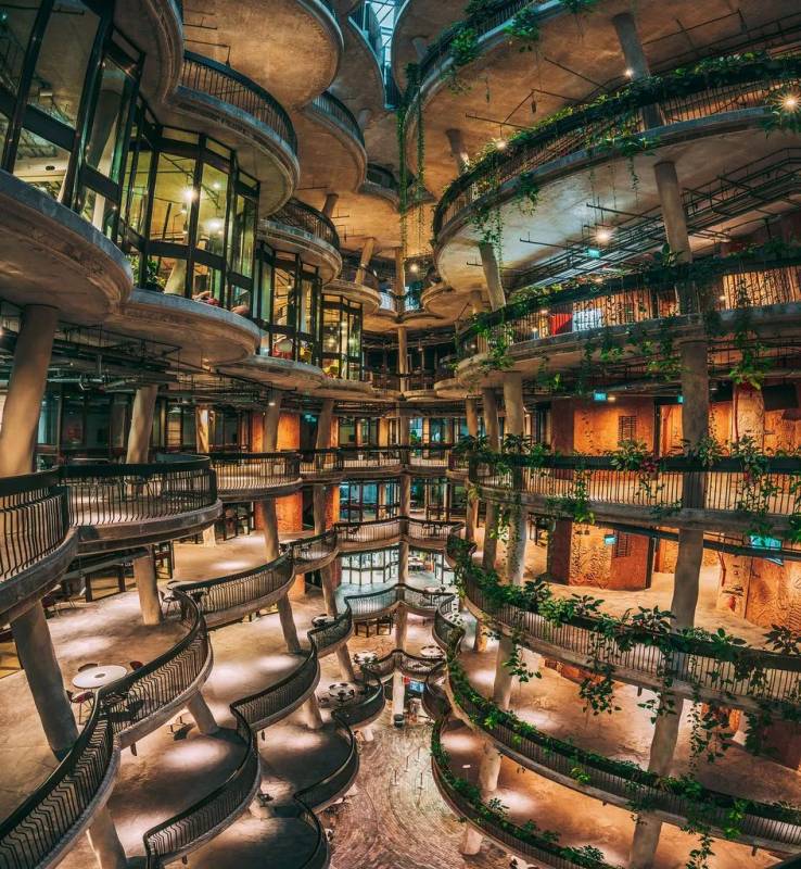 “The Hive”是一座蜂巢式的基于互聯網時代的大學交流中心,因其形似廣式早茶文化裏的蒸籠,又得一昵稱“小籠包”。它是英國建築師托馬斯·赫斯維克