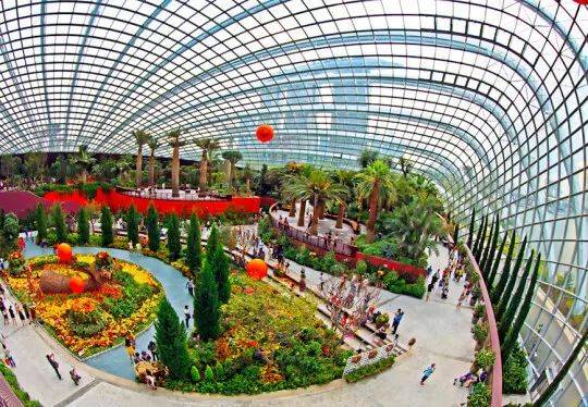 濱海灣花園是新加坡的頂級景點,共占地101公頃,有著全球最大的玻璃溫室——“花穹”,並以此獲得了 2012 年世界建築節(WAF)年度最佳建築獎。濱海灣花園是新加坡最大的海濱景觀項目,由英國頂尖景觀設計事務所 Grand Associates 設計完成,是人與自然、科學與環境難得的交融之地。