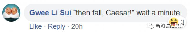 如此熱烈的留言區,本地漫畫作者及詩人魏俐瑞也來湊一份熱鬧。簡單地提醒大家別忘了這句話還有下半句:‘那就倒下吧,恺撒!’,等一等。