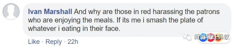 “那些穿紅衣的爲什麽在騷擾那些正在享用美食的公衆?換作是我,可能會直接將盤中餐砸向他們臉上。”