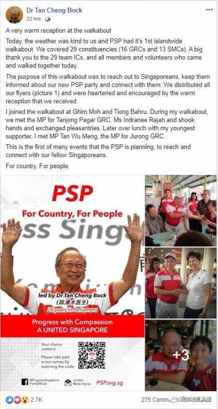 前進黨的300名成員走訪了全新加坡29個選區(其實就是新加坡全部的選區),一個也沒落下,平均每個選區派遣10人前去。前進黨還在面簿上說:2929走訪成功!