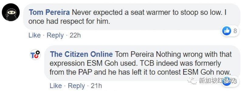 Tom Pereira網民說:我原本相當敬重老吳的,沒想到他這個暖席者竟出此下策。對此,The Citizen Online網民站出來維護老吳說:吳資政用這個比喻沒什麽問題。陳清木曾經是人民行動黨黨員,他的確已經離去,與吳資政分庭抗禮。