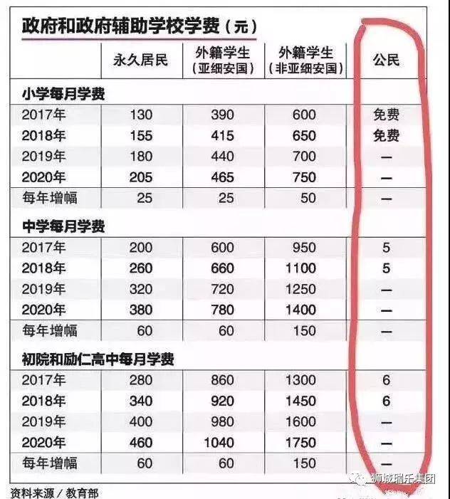 政府學校優先錄取居民和永 久居民,外國人想讀政府學校必須通過AEIS考試,每年通過率不足20%,難度之高可想而知。感受一下不同身份的學費差別: