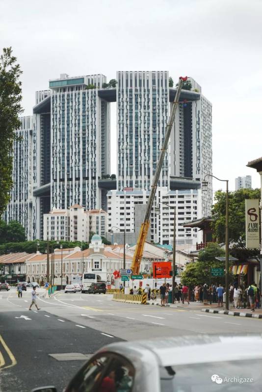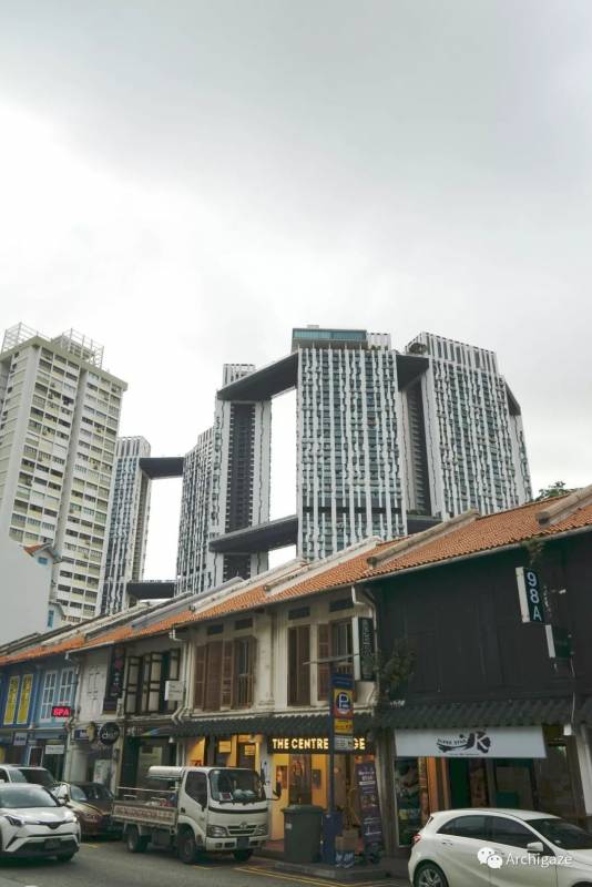 從擁擠的牛車水走出來,一路隨性地往靜谧的地方走,就看到了達士嶺組屋。第一眼就讓我想到了Steven Holl在北京的linked hybrid那個項目。甚至是同一年建成的。可以說各有異同吧。