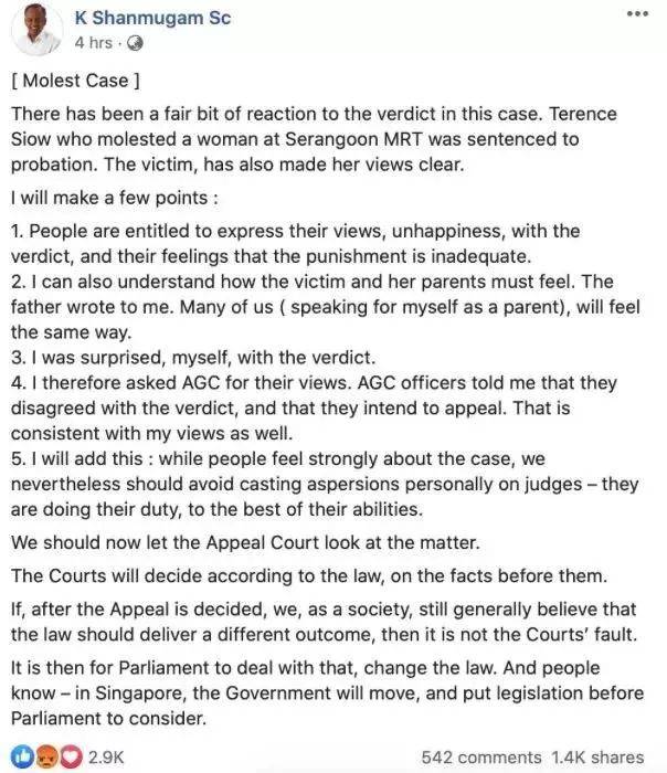 內政兼律政部長尚穆根貼文表示,總檢察署也對于判決有意見,目前已經提起上訴,但是請公衆不要對法官發起人身攻擊。