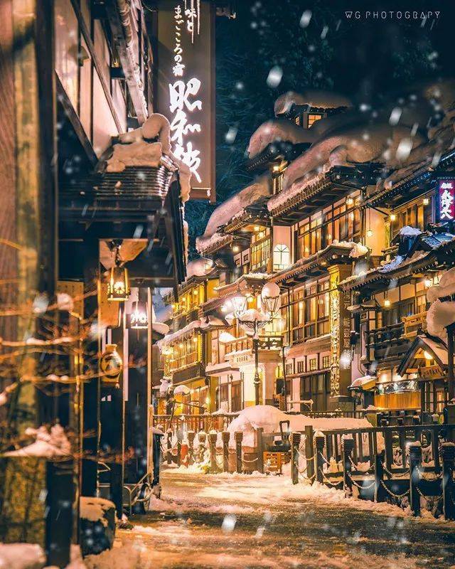 喜歡《千與千尋》的童鞋們一定對油婆婆的那棟神奇的油屋尚且記憶猶新,而日本尾花澤市的銀山溫泉街則是與之極其相似。500 多年前,這裏發現了銀礦,隨著開鑿又發現了溫泉,清冽的河水冒著熱氣穿流其中,所以這裏被成爲“銀山溫泉”。沿著溫泉流經的方向兩岸有20世紀時修建的三層和四層的木結構旅館,在煤氣燈下並列而立,氣氛甯靜,宛如世外桃源。