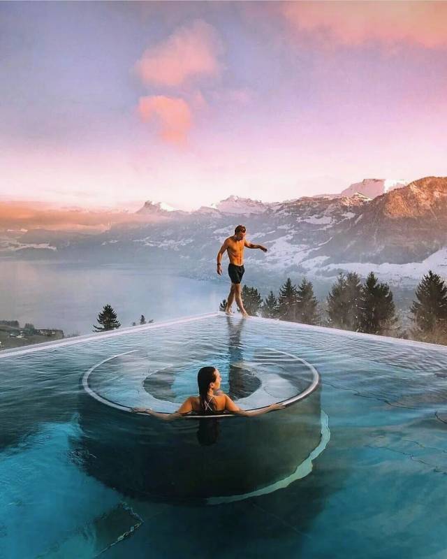 酒店最大的特色就是室外的天然溫泉,有著無敵美景的無邊泳池,池中水溫終年保持34度,仿佛在空中泡著溫泉,喝一杯雞尾酒,俯瞰著美麗靜谧的琉森湖,尤其冬季,泡著溫泉看著雪景那滋味別提多惬意了