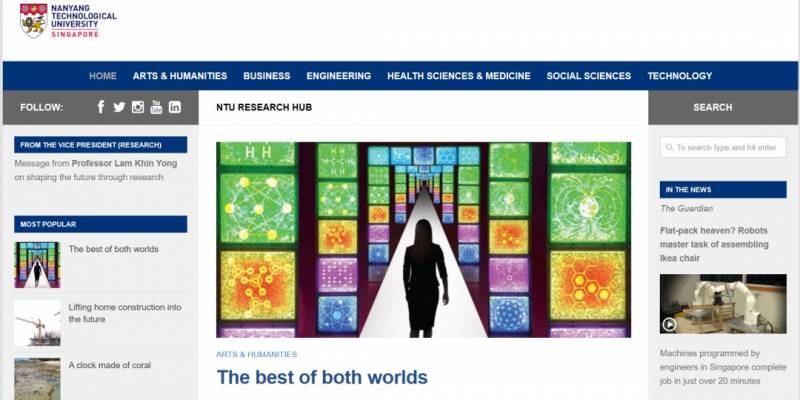 南大的最新研究成果都彙集在學校的研究中心網站 (NTU Research Hub)中,包括研究項目和最新科技資訊。