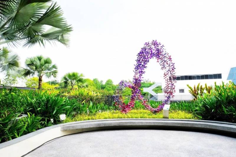 這件名爲“蝶舞之環”(Loop)的藝術品是南洋理工大學校園藝術走道(Campus Art Trail)上最新添加的藝術品, 高4.5米的“蝶舞之環”由上千只紫色蝴蝶搭 起象征“無限”的莫比烏斯帶(Mobius Loop)。