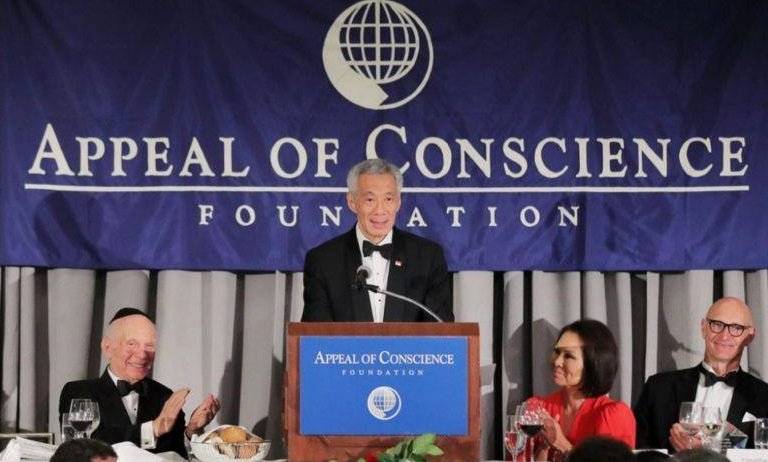 李顯龍在第54屆良知基金會頒獎晚宴上獲頒世界領導人獎。