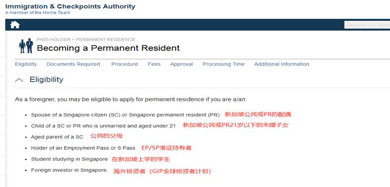 高級工作准證轉永居相關法案可前往新加坡移民與關卡局ICA官網查詢:
