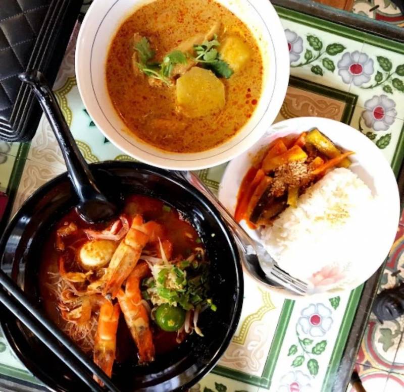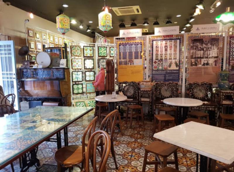室內一邊是餐廳,提供喇沙、蝦面等簡餐,一邊是娘惹磚家土生荟萃館,收藏6000多片古董彩磚,值得參觀。外面的小涼亭,也有寺廟特色,古色古香。外面擺了好幾張小桌子,讓人喝茶吃茶點,仿佛去了槟城,很多人特地來吃娘惹糕點。全部都是店家自制,大部分以糯米粉或木薯做,加入椰奶和椰絲,味道不算太甜,又有特色,值得一試。