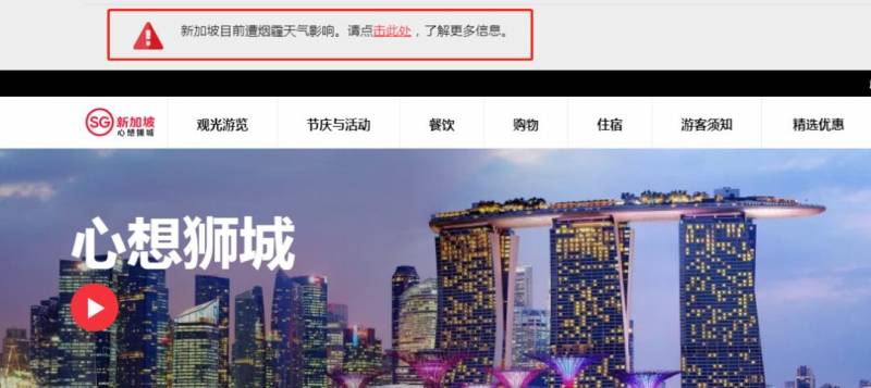 新加坡旅遊局官網在醒目位置提醒遊客注意霧霾影響