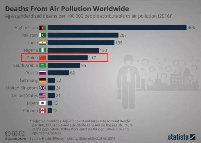 要知道空氣汙染是全球第四大死亡原因。根據全球因空氣汙染死亡的人數統計,阿富汗死亡率最高,每10萬人裏有406人,其次是巴基斯坦和印度。
