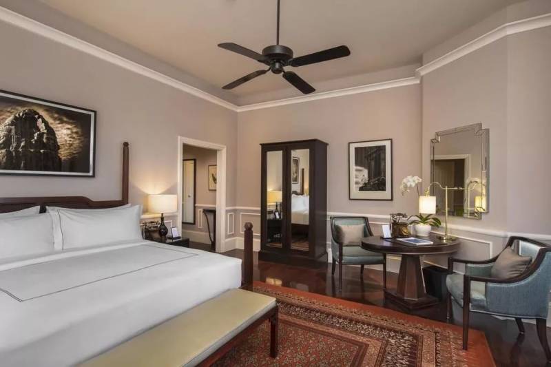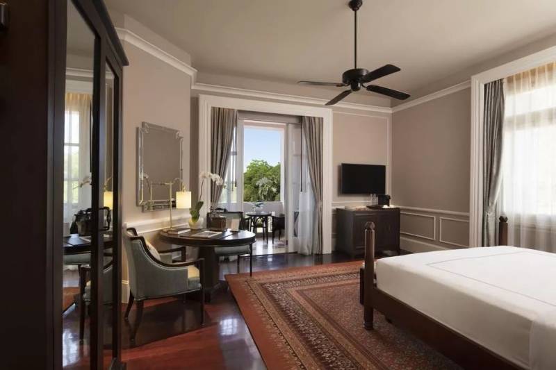元首客房融合了殖民地魅力和現代舒適體驗,空調、吊扇以及可開式窗戶全部運用殖民風格打造,深色木制紋路配幹淨大氣的室內設計,慵懶的氛圍慢慢被逮了出來。其中部分客房設有可以俯瞰花園或泳池美景的陽台,或是供住客放松身心的躺椅。