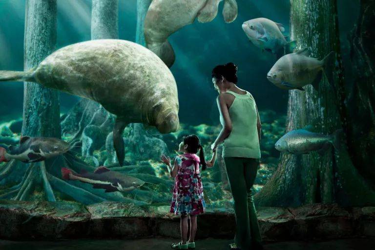 彙集了來自世界各地超過萬種的海洋生物,其中包括雄偉的鬼蝠?、伊氏石斑魚、路氏雙髻鲨等龐然生物。