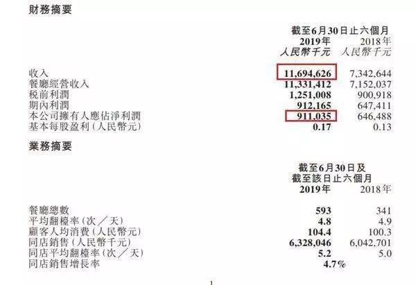 8月20日,海底撈披露2019年半年報,報告顯示,海底撈上半年實現營業收入116.95億元,同比增長59.32%;實現淨利潤9.11億元,同比增長40.92%。
