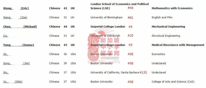 此統計僅爲學生最終選擇的學校~除此之外,大多數學生都是收到了好幾所名校的offer,比如之前寫過的唐同學,就同時收到了新加坡國大、帝國理工、南洋理工、倫敦大學學院、倫敦大學國王學院的offer,最終選擇了新加坡國大的化學專業~