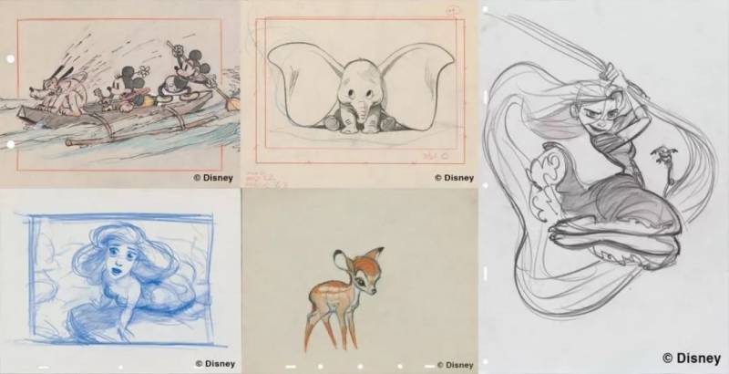 從米老鼠的誕生作品“汽船威力號”到“白雪公主和七個小矮人”,“獅子王”,“冰雪奇緣”,到近年的大片“瘋狂動物城”, “海洋奇緣”,貫穿迪士尼動畫100年曆史的原畫,手稿與概念藝術等500多件作品公開。