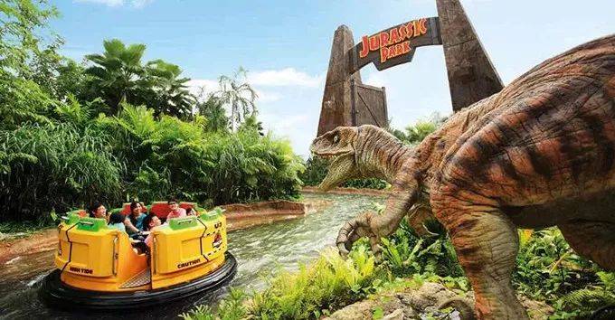 這個主題樂園的侏羅紀河流探險(漂流)號稱影城三大必玩項目之一!上了漂流船後,會有恐龍朝船噴水,只有最後沖下去的那刻超級過瘾~如果小夥伴不想“濕身”,也可以去這個主題園裏看未來水世界的表演,有爆炸、有特級,還是挺精彩的!