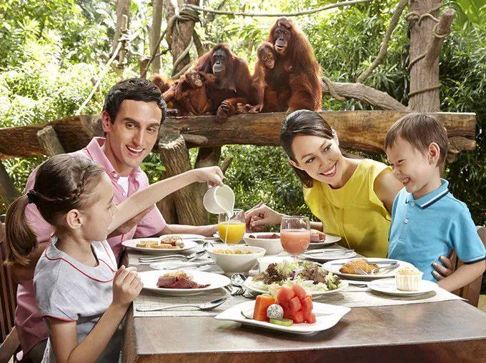 在新加坡動物園有一個特別的體驗項目,在阿明餐廳與紅毛猩猩一起吃自助早餐。每天限量20桌,需要提前預定哦!