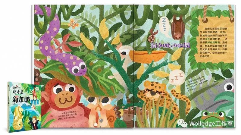 去新加坡之前,請和孩子一起翻到《這才是新加坡》新加坡動物園的章節頁面,也就是P80-81,引導小朋友在這個充滿熱帶雨林氛圍頁面上,尋找動物。