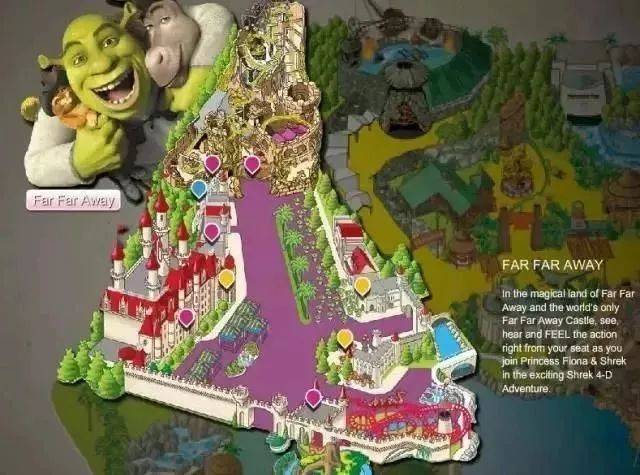 Shrek 4-D Adventure,這裏可以通過4D電影,完全身曆其境的感覺!大家會跟隨史瑞克、費歐娜公主及多話驢一起展開蜜月之旅~