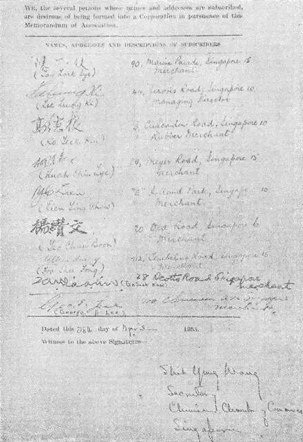 圖:南洋大學有限公司向新加坡政府提交的注冊申請,第一個名字就是陳六使