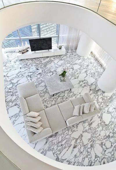 List Sotheby 是濱海舫第 69 層複式頂層公寓(5,597 平方英尺)的獨家營銷代理商。Leung 表示:這套頂層公寓原爲四臥格局,但被改造成了三臥形式,以確保在所有房間都能欣賞到濱海灣全景。”。
