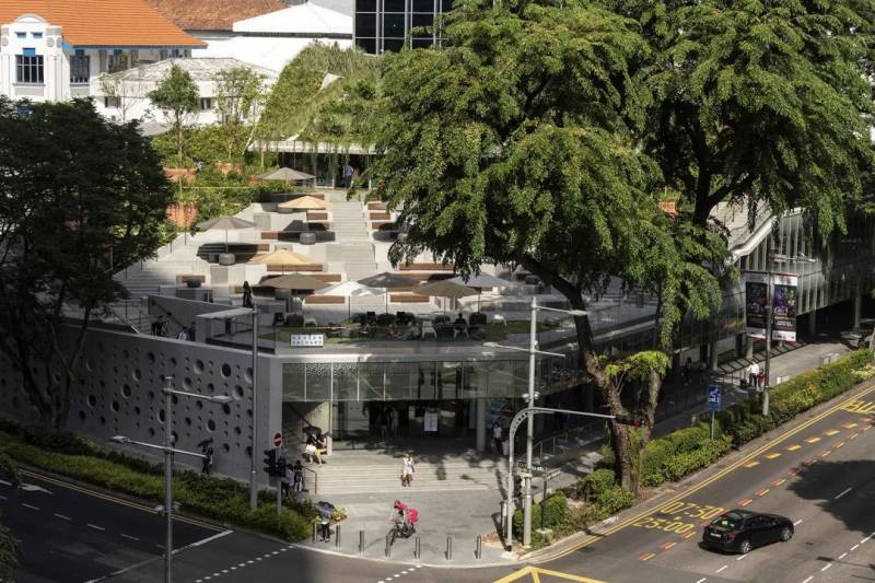 建築在道路轉角處的切角十分方便街道上的人們進出 Darren Soh