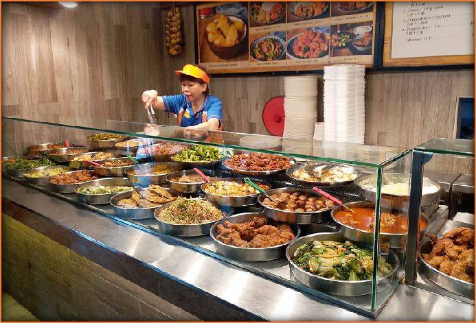 新加坡雜菜飯俗稱經濟飯,在新馬非常普遍,因爲它符合現代人需求—選擇多樣、價格合理、方便省時。新加坡雜菜飯檔一般都備有不同風味和不同烹饪手法的菜式。最常見的雜菜飯菜式包括咕噜肉、咖喱雞、炸雞、鹵肉、炒肉片、蒸蛋、煎魚、炸鱿魚、午餐肉、釀豆腐、三苔炒菜等開胃下飯的菜肴。