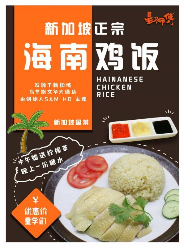 海南雞飯起源于海南省文昌市,最早只是作爲海南特産文昌雞的一種吃法在民間流傳起來。如今,海南雞飯已經成爲了新加坡的“國菜”。雞肉鮮美嫩滑、米飯芳香撲鼻、雞味香濃而不油膩,配以標准三味醬汁食用,美味無比,堪稱一絕。