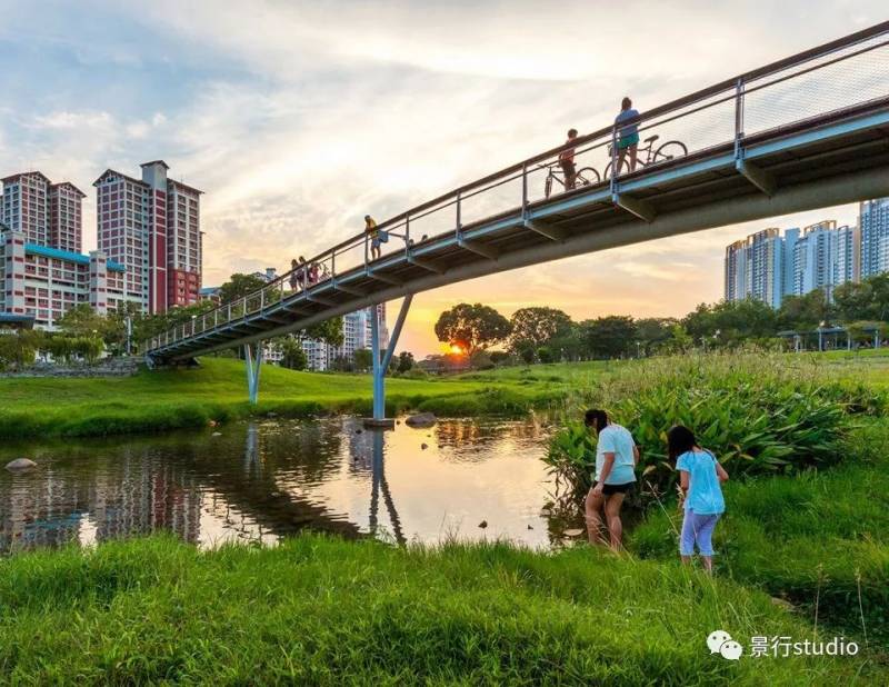改造後的河道蜿蜒曲折、寬窄不一,如同自然河流般擁有著多樣化的流動形式與流速,塑造出極爲寶貴、自然而又多元化的棲息地,爲生物多樣性奠定了基礎。而泛濫平原的設計爲新加坡城市環境中創造了一種新型高質量公共空間,無論是跨越河流的三座新建橋梁,順著河道延伸的台地狀濱河走廊,濱水平台,供人橫渡河道的踏石,抑或是引用幹淨河水的戲水廣場,種種設計都拉進了人與河流的距離。而在這種親密的接觸中人們所體驗到的自然韻律與美也進一步樹立了人們對保護環境的責任感。