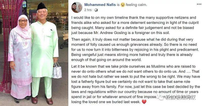 不過,死者納斯阿裏的侄子在8月30日,曾在個人面簿上發了一則文貼,籲請大家不要懷有怨恨,也無須以怨報怨、冤冤相報。