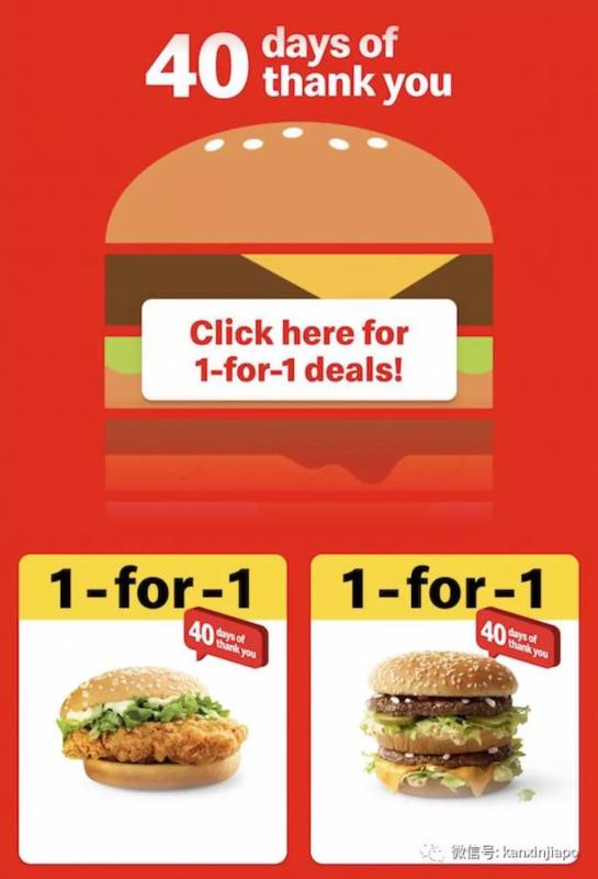 爲慶祝進入新加坡40周年,從9月9日起,連續40天,麥當勞每天都有買一送一優惠!不過需要下載麥當勞手機APP,才能享有哦~
