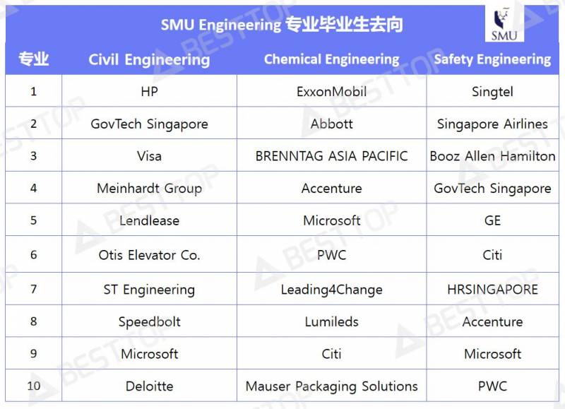 最後就是SMU了,都知道以商科出名的SMU並不太擅長工科類專業,而SMU的學長學姐們相較于NUS和NTU來說選擇跨專業求職的會更多,投行四大也是他們的選擇。