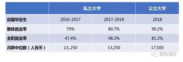 根據新加坡2018的就業數據,90.2%的公立大學本科畢業生在畢業6個月內在新加坡找到工作(包括全職、兼職、短期、自由職業等),全職月薪中位數爲3500新幣,折合17500人民幣,遠超中國應屆畢業生薪資水平。