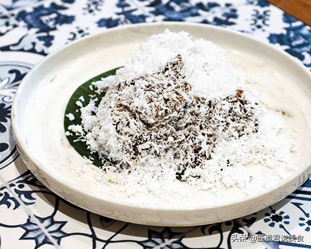 以木薯粉、馬六甲椰糖和斑蘭所制的娘惹糕點,有點像柔軟版的椰香堿水粽,質感很細嫩,絕對會爲了這一道而回來Folklore。