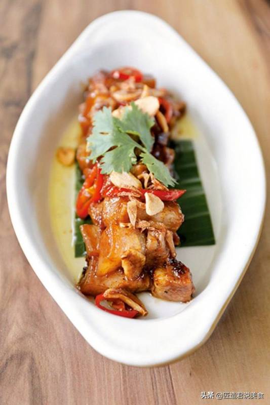 豬腩肉以八角、羅望子慢煮,後一小時要每五分鍾翻轉一次,才可以得到濃稠香甜的醬汁,淋在肥美而不油膩的豬肉上。