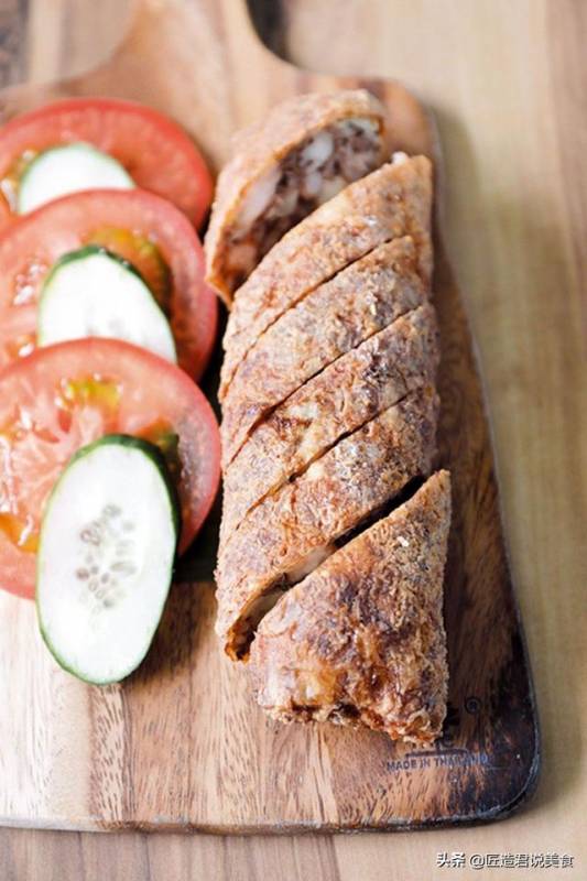 最福建豬肉卷的精致版,豬肉加入了馬蹄、蝦仁和五香粉,再以腐皮包裹,先蒸後炸,非常香口。