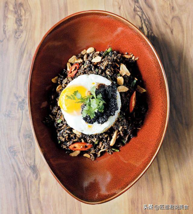 Folklore的另一道招牌菜式,源自娘惹,以參峇醬、豬肉和黑果(Candlenut)炒飯,飯呈黝黑色,味道有點像榄角,還有椰香,非常特別。還有像客家焖豬肉 的亞參豬肉、似南乳粗齋的娘惹雜菜、參峇醬炒茄子、椰奶蔬菜等,都充滿獨特的南洋風味,是認識當地文化的好地方,晚餐要吃得好又舒適,Folklore是不錯的選擇。