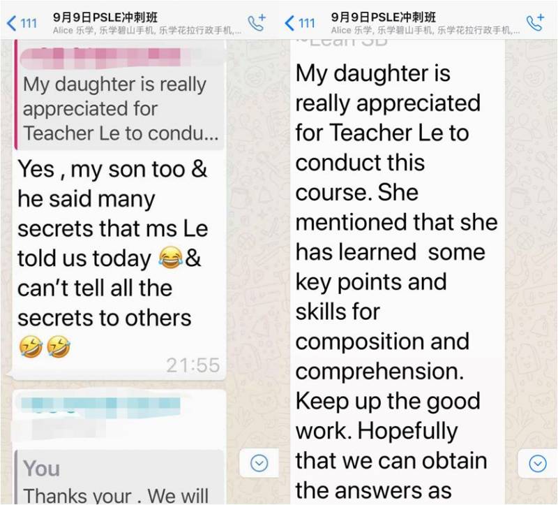 (她培養的孩子在2016/2017PSLE的考試中全部A和A*)