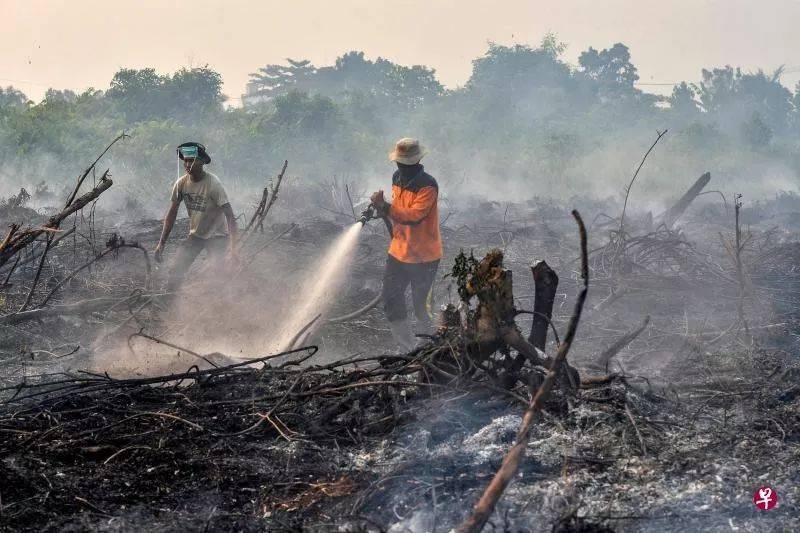 印度尼西亞林火持續,印尼當局已動員數千人滅火,避免2015年東南亞霾害重演。圖爲消防員前天在蘇門答臘島廖內省首府北幹巴魯一個著火的油棕園灌救。