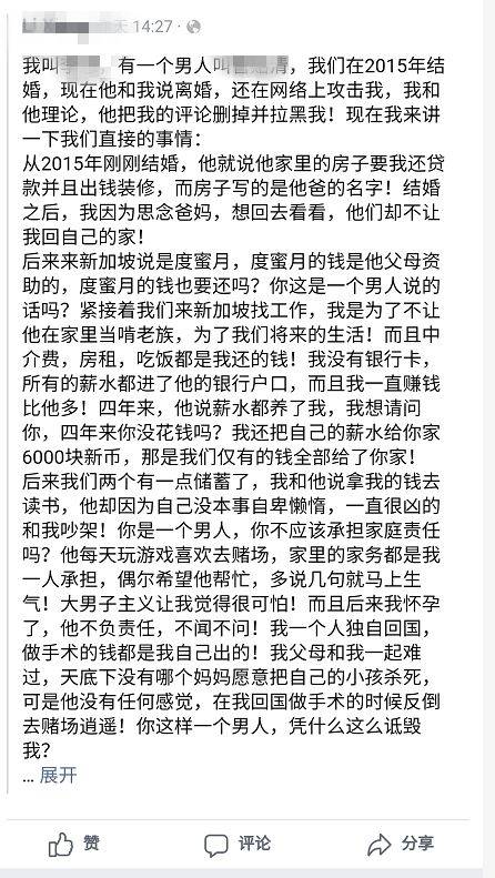 女方在Facebook發文