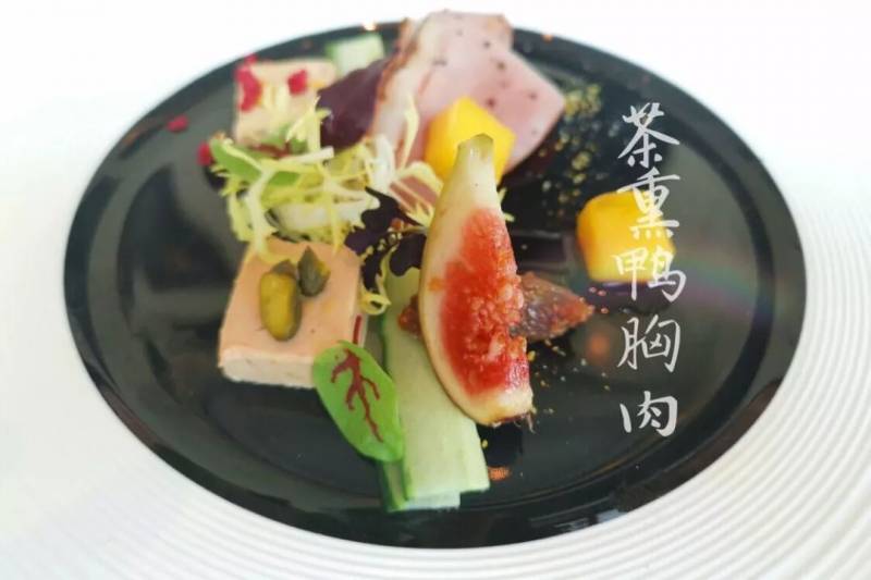 前菜- 陶盤裝茶熏鴨胸肉配法式鵝肝