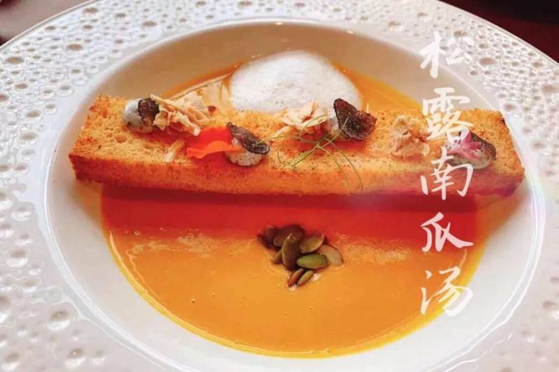 那輪明月可是點睛,用分子料理手法添加的松露,跟南瓜湯一起吃,味道更勝一籌。